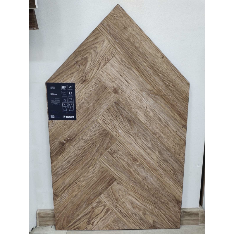 Коллекция ANGLETERRE — это первая коллекция ламината Tarkett с форматом укладки «Английская ёлка». Притягательной особенностью данной коллекции является уникальный формат укладки. В этом способе укладки более короткая сторона одной планки соединяется с более длинной стороной другой планки под прямым углом.
