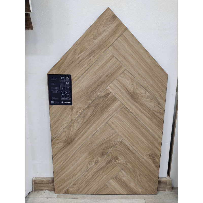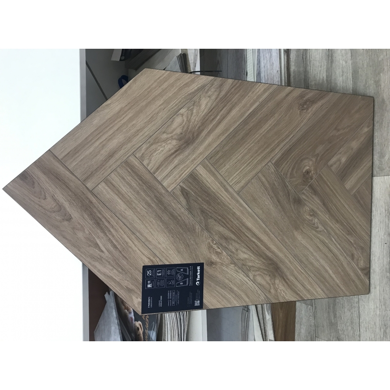 Коллекция ANGLETERRE — это первая коллекция ламината Tarkett с форматом укладки «Английская ёлка». Притягательной особенностью данной коллекции является уникальный формат укладки. В этом способе укладки более короткая сторона одной планки соединяется с более длинной стороной другой планки под прямым углом.