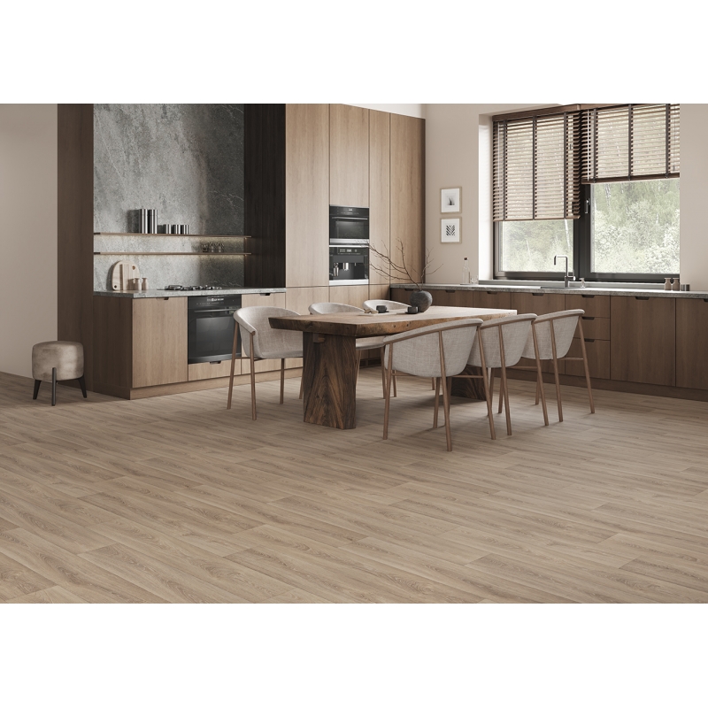 Высокая износостойкость: Покрытие устойчиво к истиранию, что делает его подходящим для помещений с высокой проходимостью.