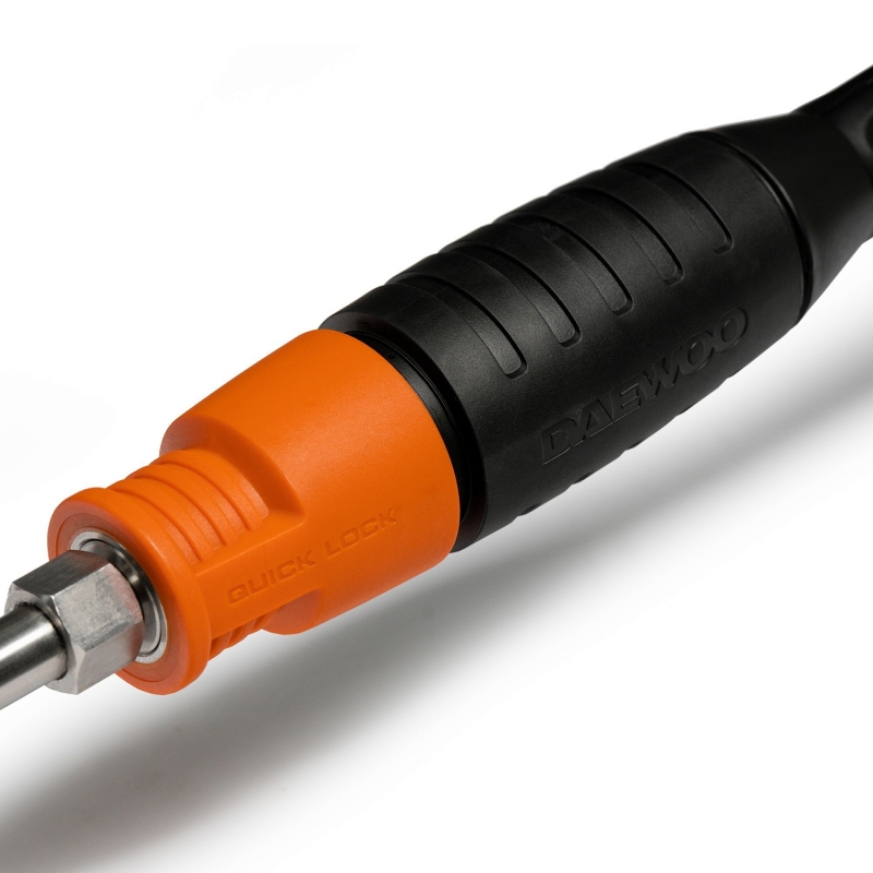 - Пистолет DAEWOO QUICK LOCK. Новый курок обеспечивает комфортную работу с минимальным усилием нажатия, снижая нагрузку на руку при длительной эксплуатации. Система QUICK LOCK позволяет менять насадки одним движением, без использования резьбовых соединений.
