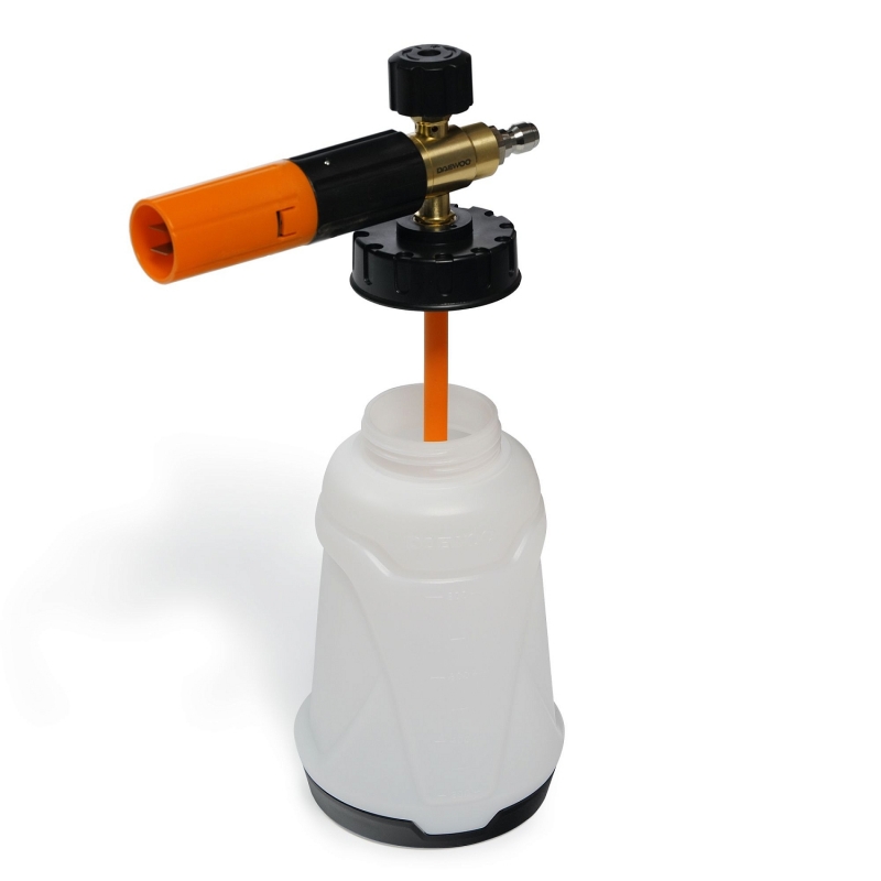 - Пеногенератор. Новый пеногенератор объемом 1л с латунной смесительной камерой и металлической пенной таблеткой выдает густую стойкую пену. Плотность пены и угол распыления легко регулируются для достижения оптимального результата с разными моющими средствами.